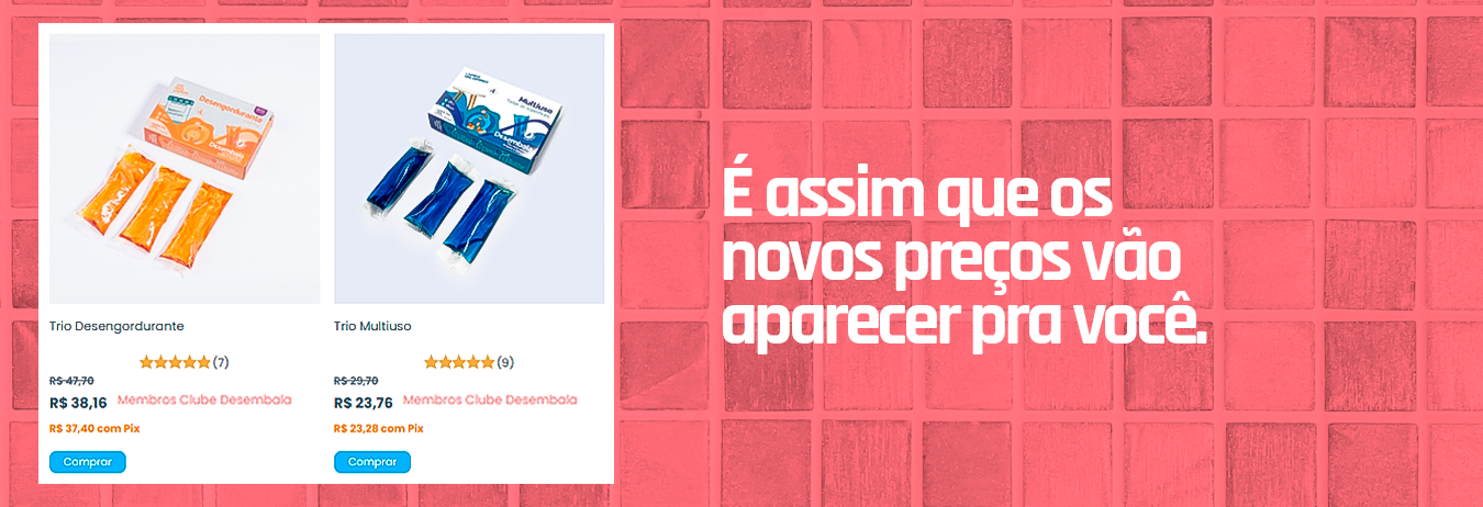 O Clube Desembala existe porque a sua rotina já é cheia demais pra ainda ter que se preocupar com reposição de produto, preço alto ou falta de praticidade. Fazer parte do Clube é garantir que, sempre que você precisar, vai encontrar os produtos que já funcionam na sua casa por um valor muito mais acessível: sem precisar esperar promoção e sem estoque desnecessário.