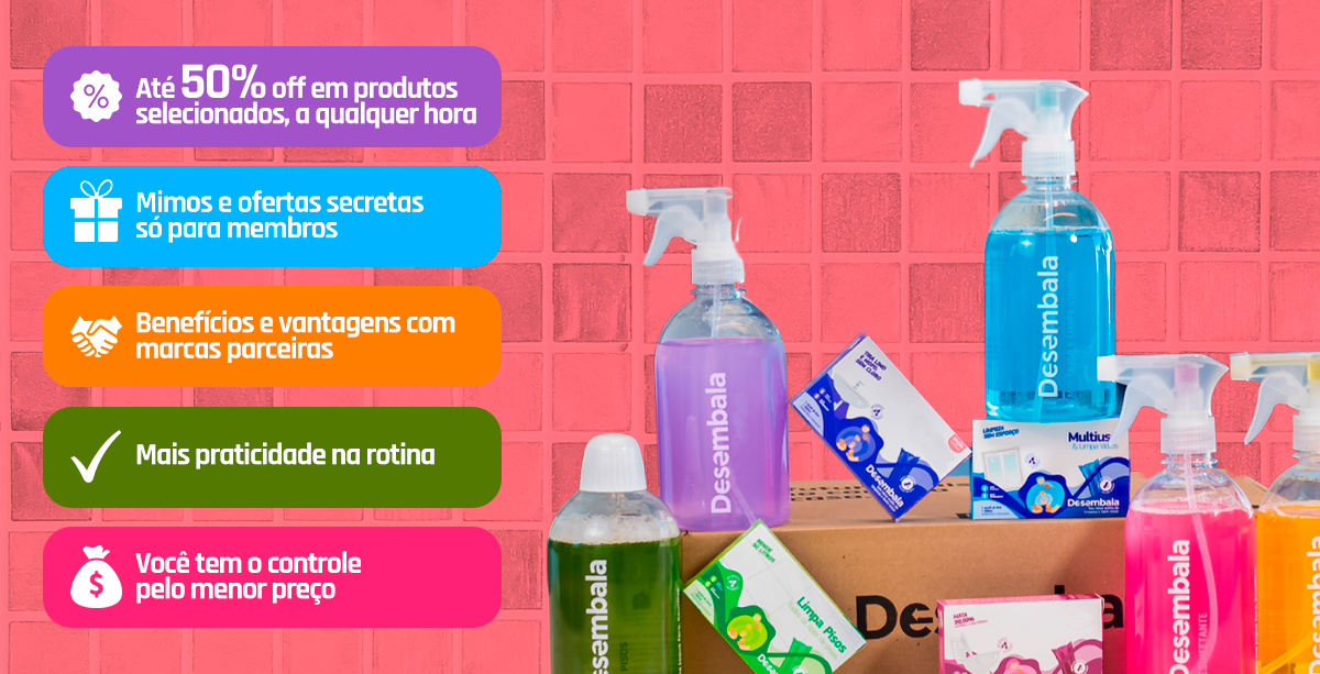 O Clube Desembala existe porque a sua rotina já é cheia demais pra ainda ter que se preocupar com reposição de produto, preço alto ou falta de praticidade. Fazer parte do Clube é garantir que, sempre que você precisar, vai encontrar os produtos que já funcionam na sua casa por um valor muito mais acessível: sem precisar esperar promoção e sem estoque desnecessário.