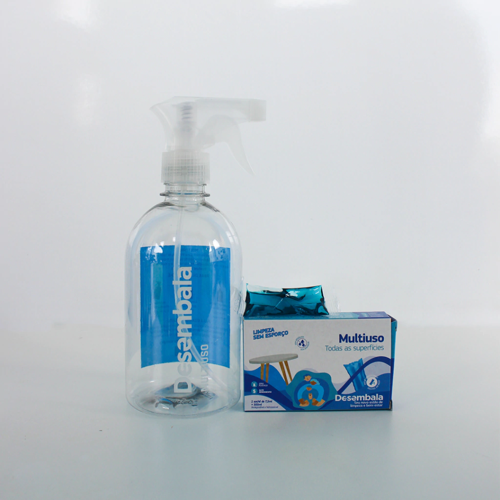 O mais versátil dos produtos de limpeza da Desembala. Esse Multiuso é perfeito para limpeza de todo tipo de superfície: mármore, pedra, madeira, MDF, cerâmica, vidro, estofados e muito mais.